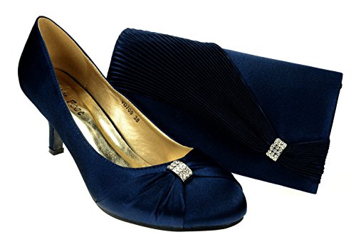 Best Seller! Chic Feet Womens Navy Blue Party Wedding Prom Evening Shoes & Matching Bag - UK 6 Review