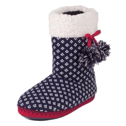 This Pattern knit bootie by Totes feaures a supersoft cuff, warm fleece lining with pom pom detail and a durable sole.